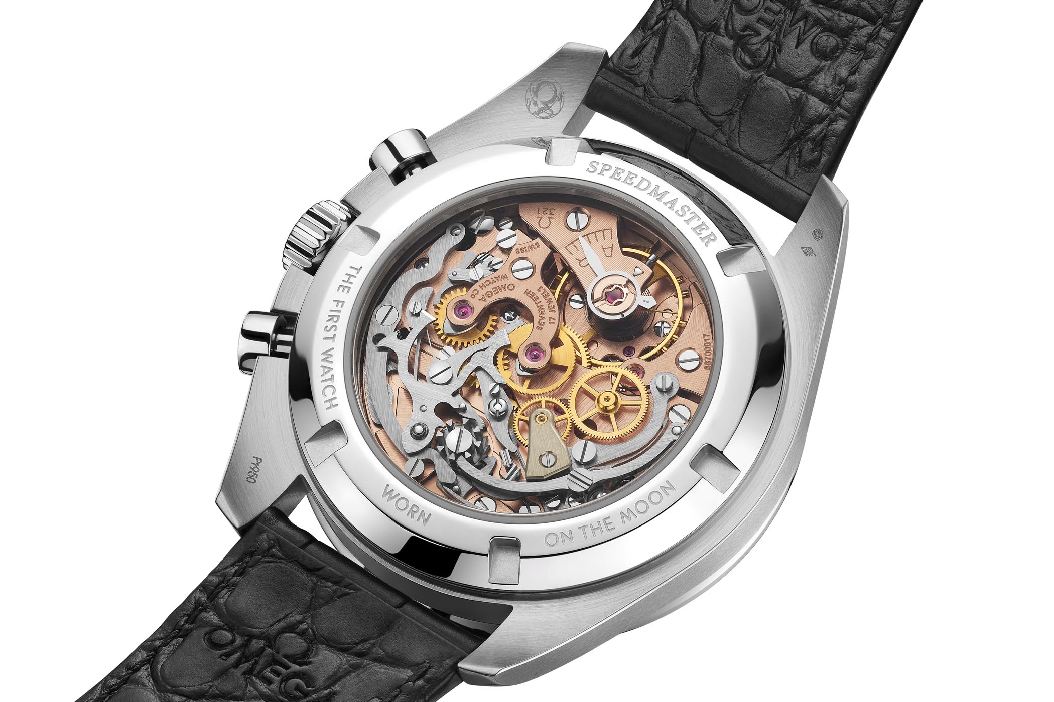 Чтобы соответствовать теме «Посадка на Луну», Omega Speedmaster Moonwatch 321 Platinum оснащен превосходным черным полированным циферблатом из оникса, на котором вы увидите стрелки из 18-каратного белого золота и прикладные индексы - все они заполнены Super-LumiNova. Три вспомогательных счетчика сделаны из метеорита - и, чтобы полностью соответствовать теме, Омега использовал настоящие кусочки лунного метеорита. Логотип Омега на 12 часов. Омега здесь полностью воссоздает механизм 1:1, без использования современных технологий - без коаксиального сигнала, без мастер-хронометра. Как и в оригинальном механизме, «новый» калибр 321 работает медленно при 18 000 об / мин и покрыт позолотой. Это видно через заднюю крышку сапфира. Omega Speedmaster Moonwatch 321 Platinum носится на черном ремешке из кожи аллигатора с платиновой пряжкой. Что касается доступности, Omega не упоминает про ограниченную серию. Тем не менее, когда 321 был вновь представлен, бренд заявил, что в год будет производиться не более 2000 механизмов. Производство останется довольно эксклюзивным.