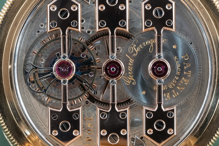 Турбийон работает довольно просто. Например, механизм этого карманного хронометра Girard-Perregaux 1889 года показывает основные принципы. Ствол боевой пружины - справа; при вращении ствол зацепляется за шестерню центрального колеса. Когда центральное колесо вращается, оно переключается на шестерню каретки. Эта шестерня находится под кареткой и не видна. Механизм, который является видимым непосредственно под кареткой турбийона не включается; он фактически прикреплен к пластине. Зубья этой неподвижной шестерни зацепляются с шестерней спускового колеса, что видно примерно в положении 10:00 каретки. Когда каретка поворачивается, зацепление спускового колеса с неподвижным колесом заставляет спусковое колесо поворачиваться, а когда оно разблокируется, оно дает импульс балансу. В зависимости от спуска и желаемой скорости турбийона возможны различные конфигурации. Однако их всех объединяет наличие неподвижного колеса, которое приводит в движение колесо внутри клетки, когда клетка вращается. Фиксированное четвертое колесо, которое обычно вращается один раз в минуту и ​​на оси которого установлена ​​секундная стрелка, даст вам минутный турбийон, но при желании вы можете использовать фиксированное третье колесо с установленными четвертым колесом и колесом аварийного выхода внутри клетки. Такое расположение часто предпочитали дизайнеры, ищущие более эффективные турбийоны, поскольку более медленное вращение означает, что вам придется преодолеть меньшую инерцию при разблокировке спуска.