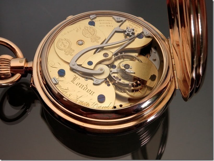 Хотя первые часы с турбийоном были произведены Breguet, они вызвали интерес не только во Франции и Швейцарии, но и в Гласхютте и Англии, которые сделали несколько красивых карманных часов с турбийоном. Англичане, похоже, очень интересовались вращающимися спусковыми механизмами и стремились улучшить оригинальную конструкцию Breguet с точки зрения надежности и точности. Недавно мы услышали от читателя, который указал нам, что парящий турбийон на самом деле был изобретен не в Гласхютте, а в Англии, и что англичанин по имени Роберт Бенсон Норт получил патент на парящий турбийон в 1904 году при регистрации в 1903 году. Основной характеристикой летающего турбийона является то, что не существует никакого верхнего моста для турбийона. В турбийоне Smith & Sons со снятой платформой отчетливо видно неподвижное третье колесо. Когда платформа снята с механизма, видно неподвижное колесо. Патент и дизайн Норта действительно соответствуют основным критериям парящего турбийона. Так пора ли переписать учебники по истории?