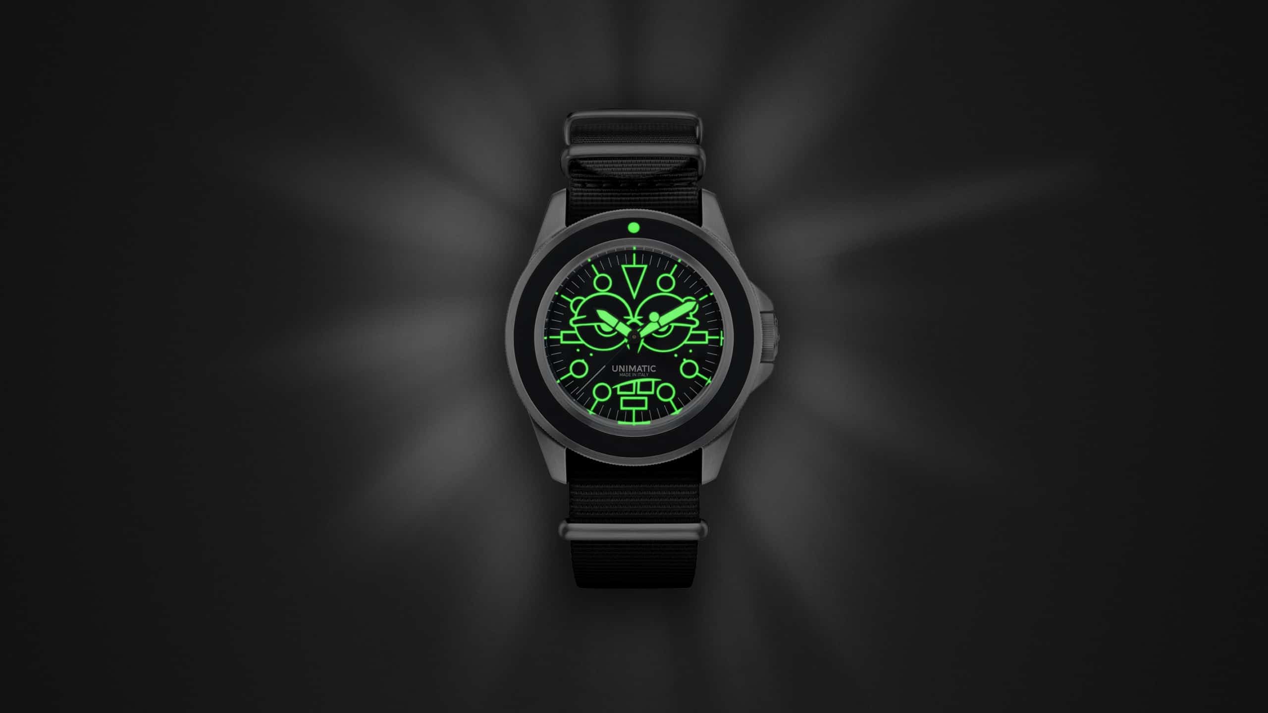 U1-SS3 резко контрастирует с ярко-желтым SS1 благодаря черному циферблату, безелю и ремешку. Здесь в Super-LumiNova C1 отображаются только черты лица Губки Боба, а также график часов и стрелки, то есть они будут светиться вместе с элементами хронометража. На этом циферблате Губка Боб выглядит более модно, можно даже назвать его «не хромым», поскольку он сливается с часовыми метками. Этот пример все еще доступен на данный момент за ~ 770 долларов, и его можно получить в Unimatic.