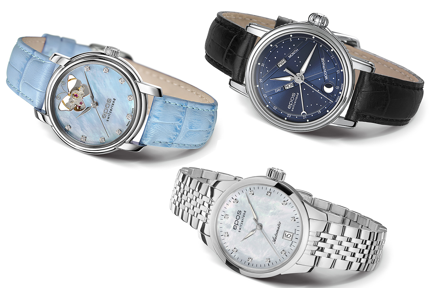 Часовые новинки 2017 года из женской коллекции характеризуются сверкающими циферблатами. Циферблат из перламутра в сочетании с бриллиантами дает моделям 4314OH и 4426 изысканный внешний вид. Главная изюминка модели 4391 Blue Stars – индикатор лунных фаз.